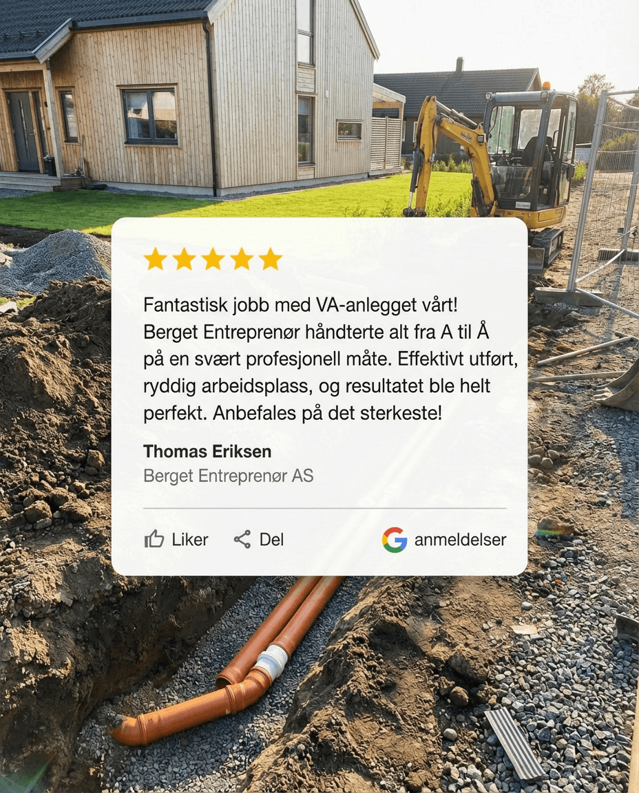 Fantastisk jobb med VA-anlegget! Profesjonelt fra start til slutt. Anbefales på det sterkeste.