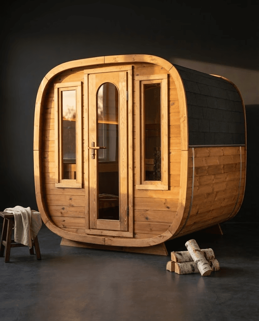 Our newest model is ready for delivery. Handcrafted barrel sauna in Norwegian pine – designed for Nordic winters.